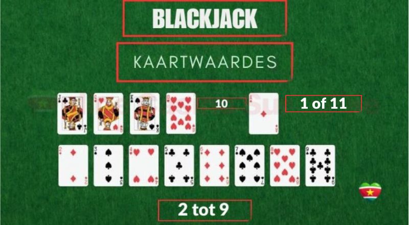 Wanneer het aankomt op de kaartwaardes, dan hebben alle afbeeldingen een waarde van 10, en behouden de kaarten met 2 tot en met 9 erop afgebeeld hun eigen waarde. De aas telt als 1 of 11. Een vuistregel is dat je het altijd opneemt tegen de live dealer en niet tegen andere spelers.